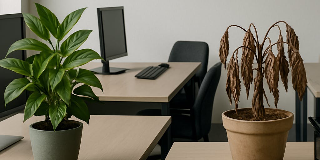 誰も手入れしていない観葉植物がオフィスの片隅に置かれたままになっている光景を、見たことはありませんか。それは、単なるインテリアの放置ではありません。実はその姿が、職場の空気や働く方の気持ちを映し出していることがあります。