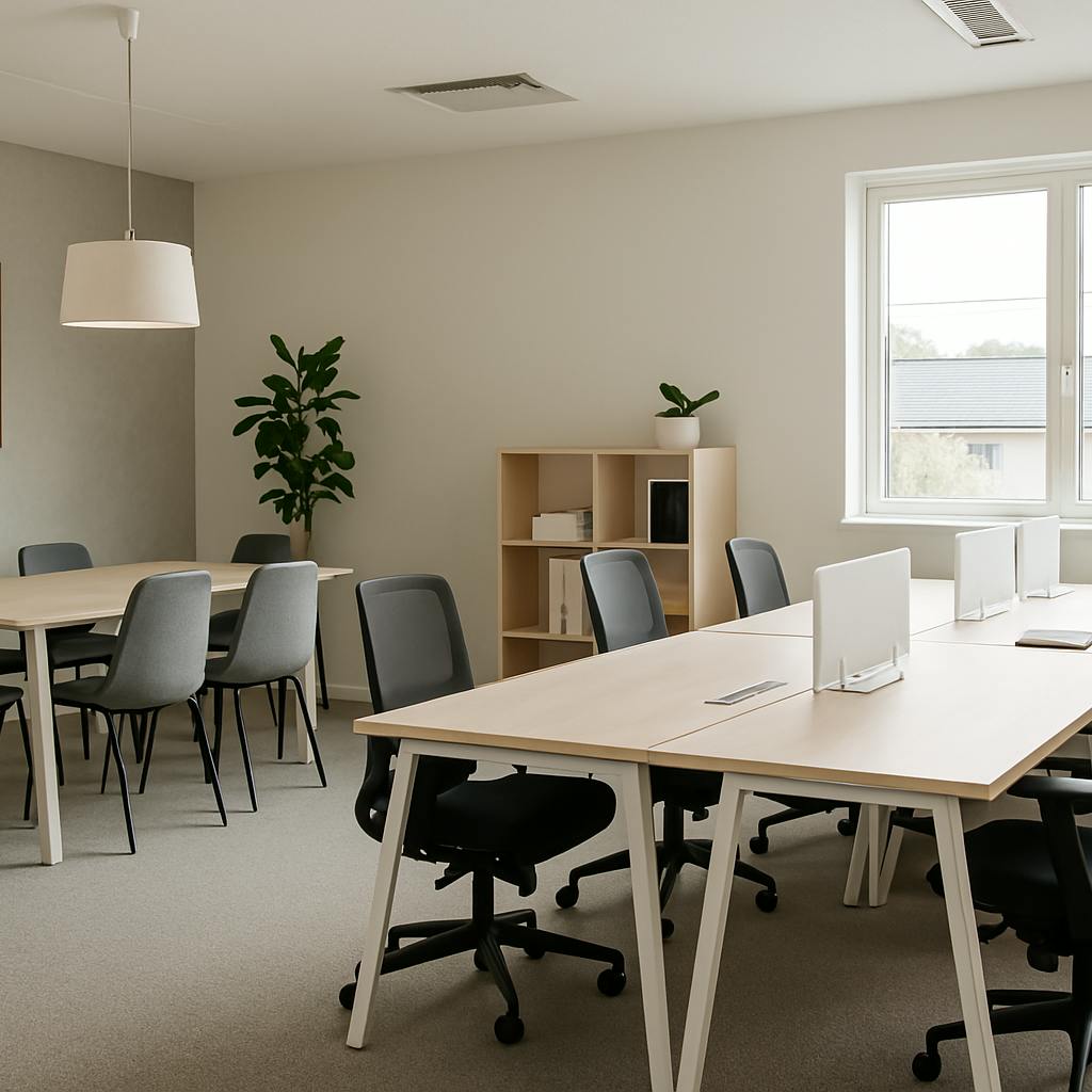 集中して作業を行うためのスペースは、ハイブリッドワークの成功に欠かせない要素です。デスクの配置や適度な仕切りを活用し、周囲の声や視線を遮る設計が必要です。静かな環境を作ることで、従業員の皆さまが業務に集中しやすくなります。