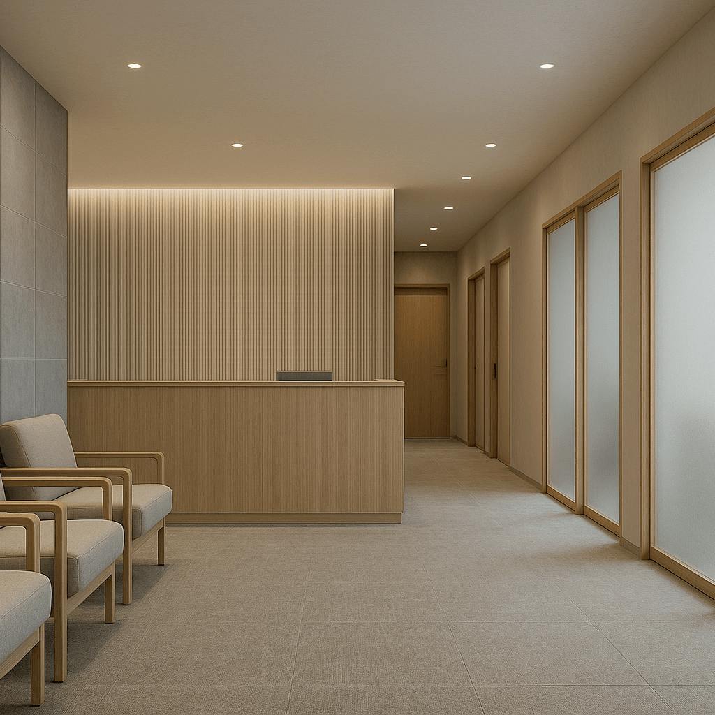 光と色の“温度差”を減らすことで、受付やカウンセリングルームでの緊張感が自然と和らぎます。