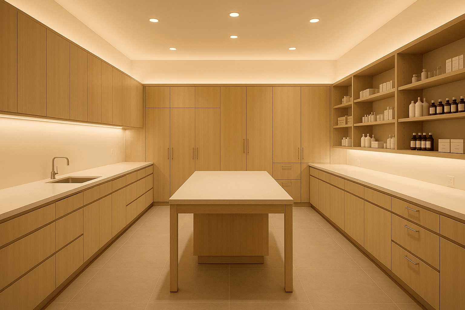 バックヤードの照明は、作業効率だけでなく心の状態にも影響します。