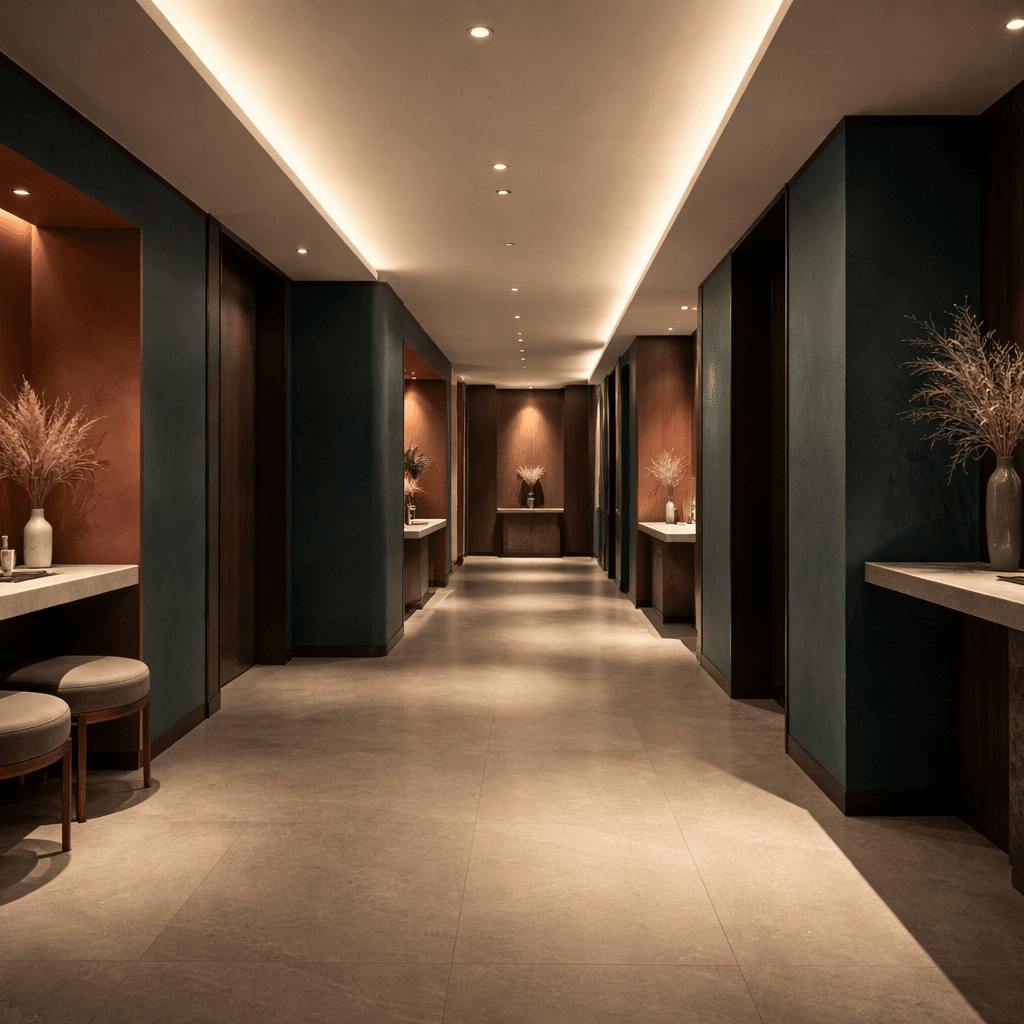 たとえば、受付からカウンセリング室、施術室へと続くルートに“心理的な区切り”をつくることで、プライバシーが守られているという印象を与えられます。
