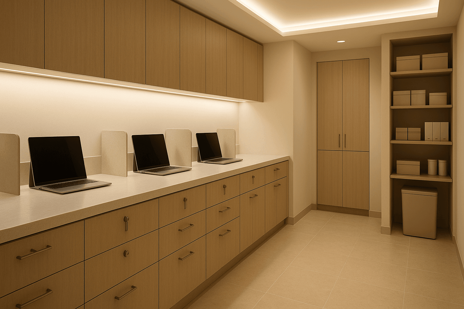 ・バックヤードの棚は「個人情報あり」と「備品」を物理的に分離し、鍵付き収納を基本にする