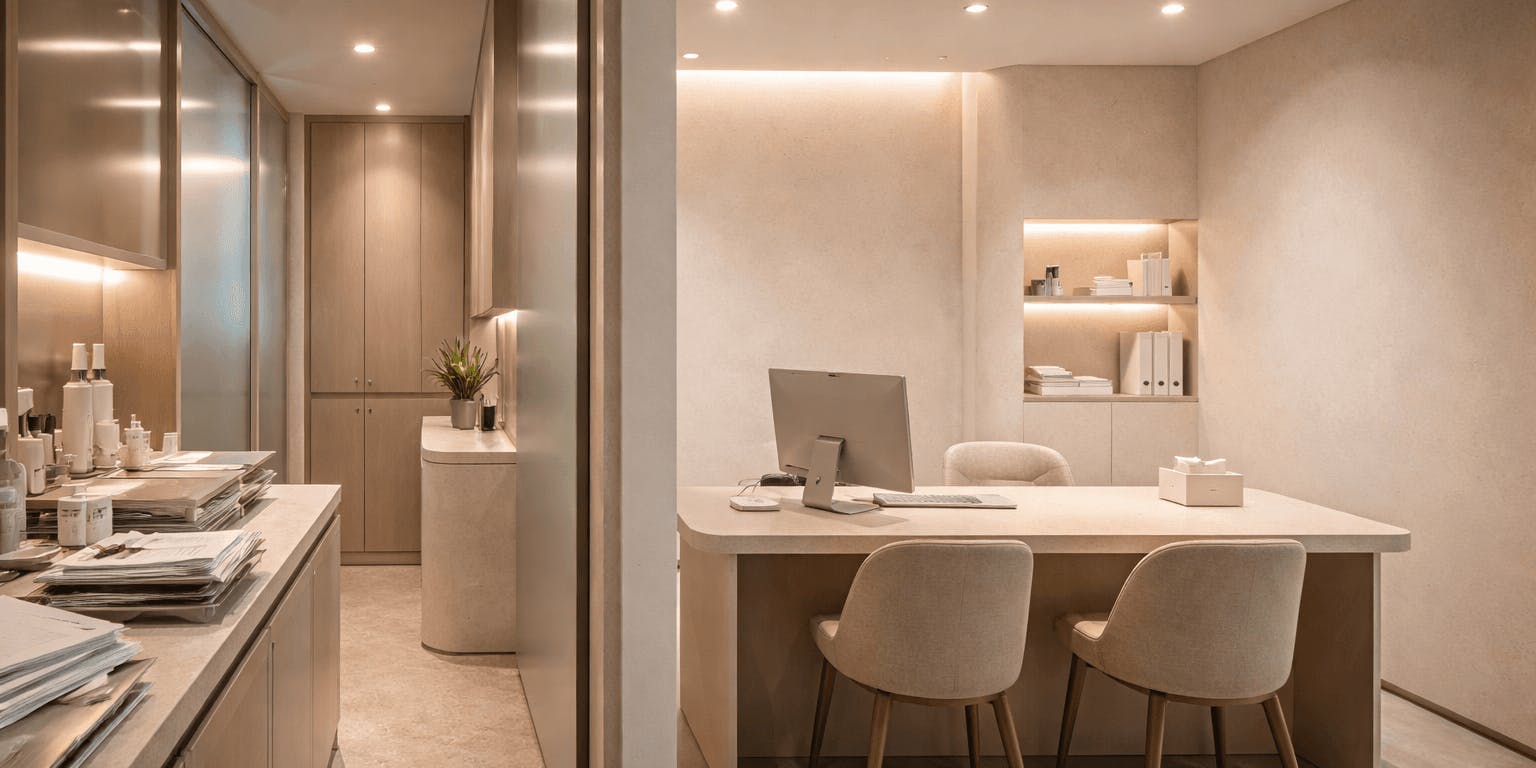 「カルテを見る場所」「同意書を確認する場所」「見積をつくる場所」が離れていると、移動が確認回数を増やします。歩く距離が長いほど、確認は増えます。これは人の丁寧さではなく、動線がそうさせます。