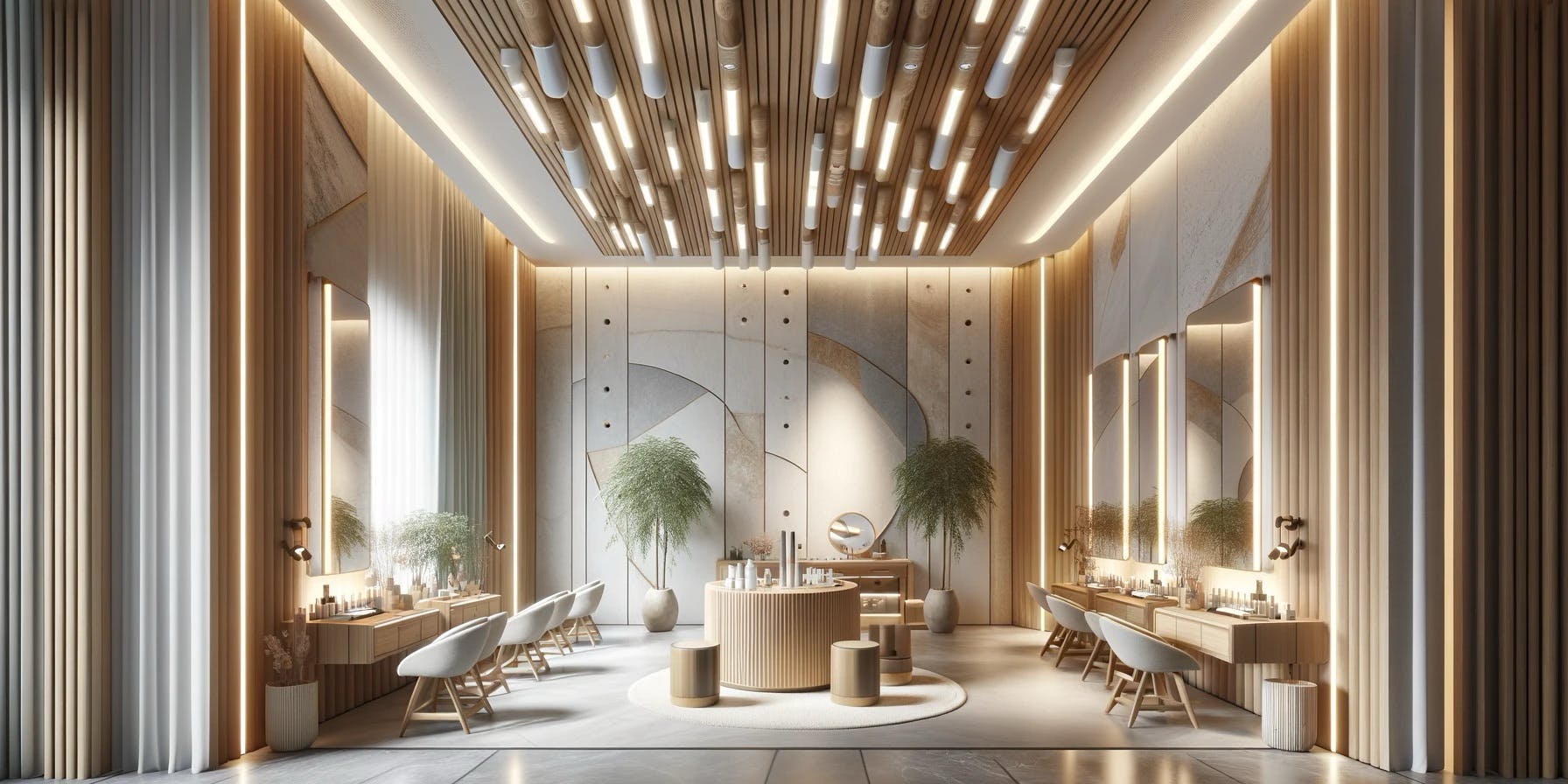 さらに、自然光を最大限に活用することで、サロン内の雰囲気を一層豊かにします。大きな窓を設置し、直射日光が強すぎないよう適切な日よけを配慮することで、柔らかくて温かみのある光が空間全体を包み込みます。これらの手法を通じて、サロンはただの美容施設ではなく、お客様にとって心からリラックスできる特別な場所となるでしょう。