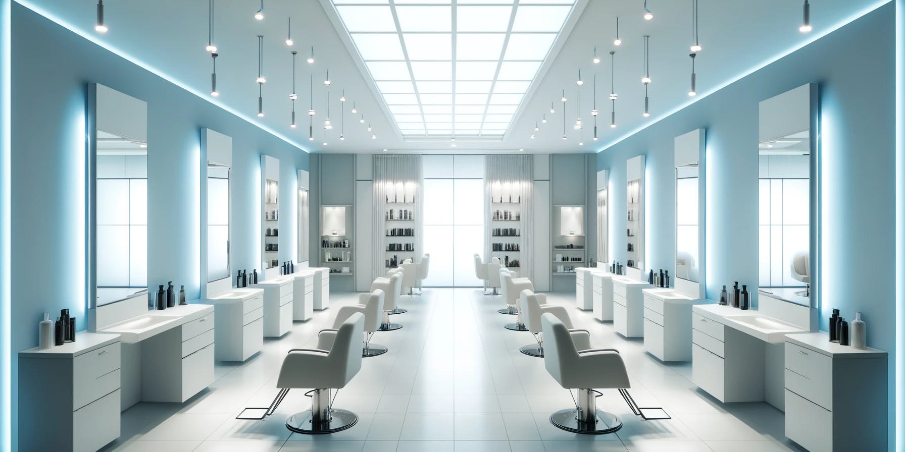 アンビエント照明は、美容サロンの室内環境を整える上で基本となる光源です。この照明の目的は、空間全体に均一で柔らかな光を提供し、店舗の雰囲気を作り出すことにあります。