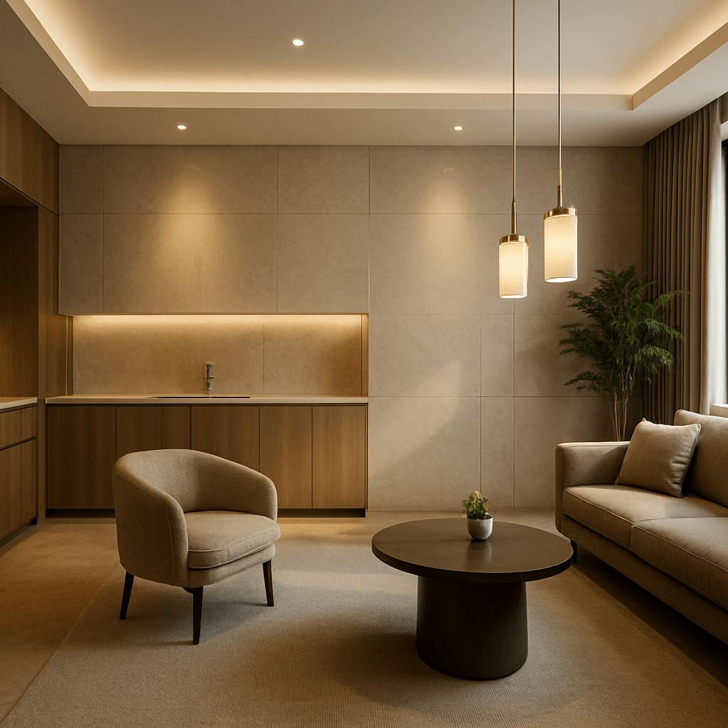空間全体の照明計画をレイヤー化することで、時間帯や用途に応じて最適な照明を提供します。例えば、天井のダウンライト、壁のブラケットライト、床のスタンドライトなどを組み合わせることで、複数の光源を活用し、奥行きのある照明デザインを実現します。
