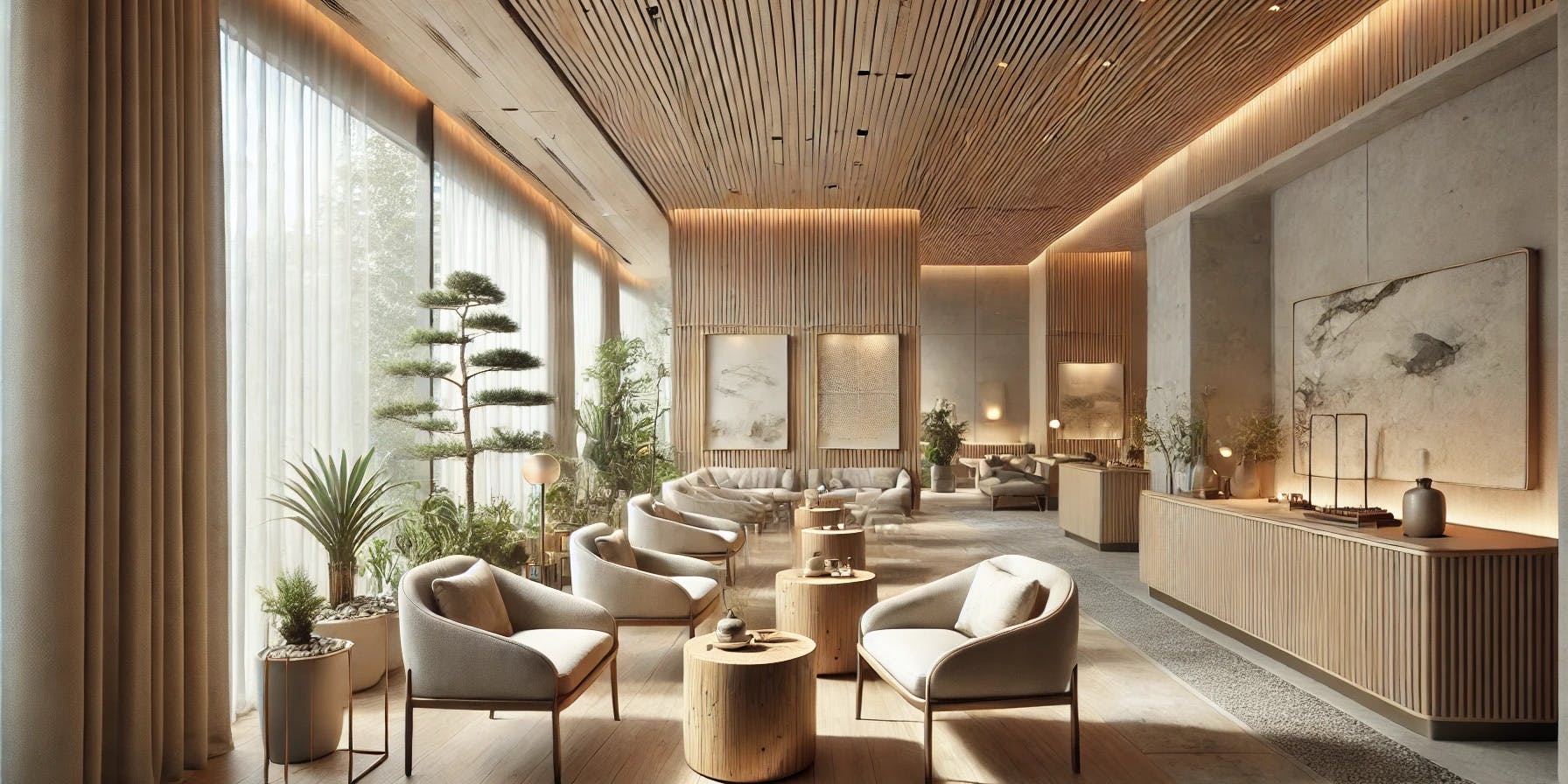 都市部の美容店舗では、自然との接点が少ない環境にあることが多いため、室内に自然要素を取り入れるバイオフィリックデザインが有効です。バイオフィリックデザインとは、人間と自然の結びつきを重視し、建築物や空間デザインに自然要素を組み込む手法です。具体的には、観葉植物やエアプランツを店舗内に設置し、自然光の取り入れが難しい場合は、自然光に近い照明を利用することで、室内環境を改善します。