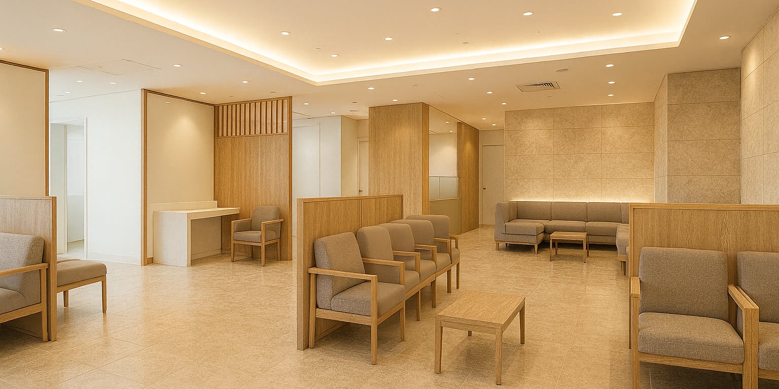 待合室は単なる通過点ではなく、患者さまの心理を支える重要な空間です。施術前後の不安や気がかりを汲み取ったデザインは、クリニックの信頼感を高め、再来院にもつながります。