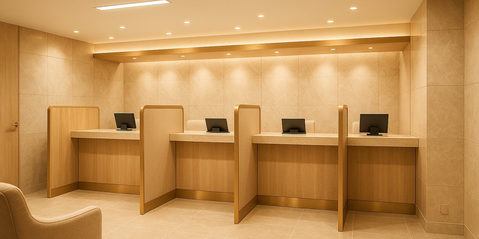 会計の瞬間は、患者さまの記憶に強く残るシーンです。その体験を「緊張」ではなく「自然な流れ」として感じていただくために、カウンター設計は軽視できません。