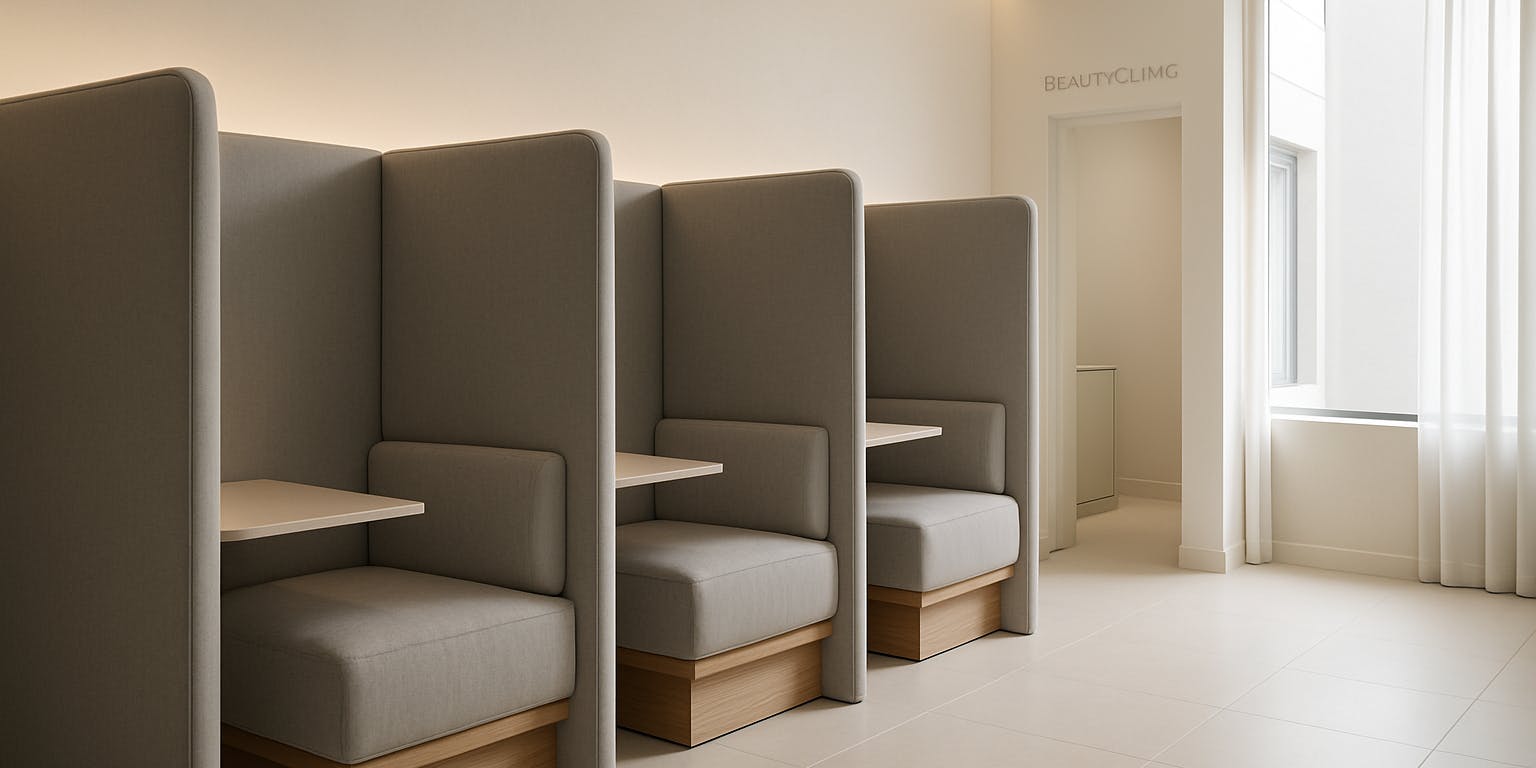 落ち着いて記入できる環境を整えるには、まず視線を遮る工夫が重要です。待合室の中央に机を置くのではなく、壁際やパーテーションで区切られた場所に記入スペースを設けると、自然とプライバシーが保たれます。