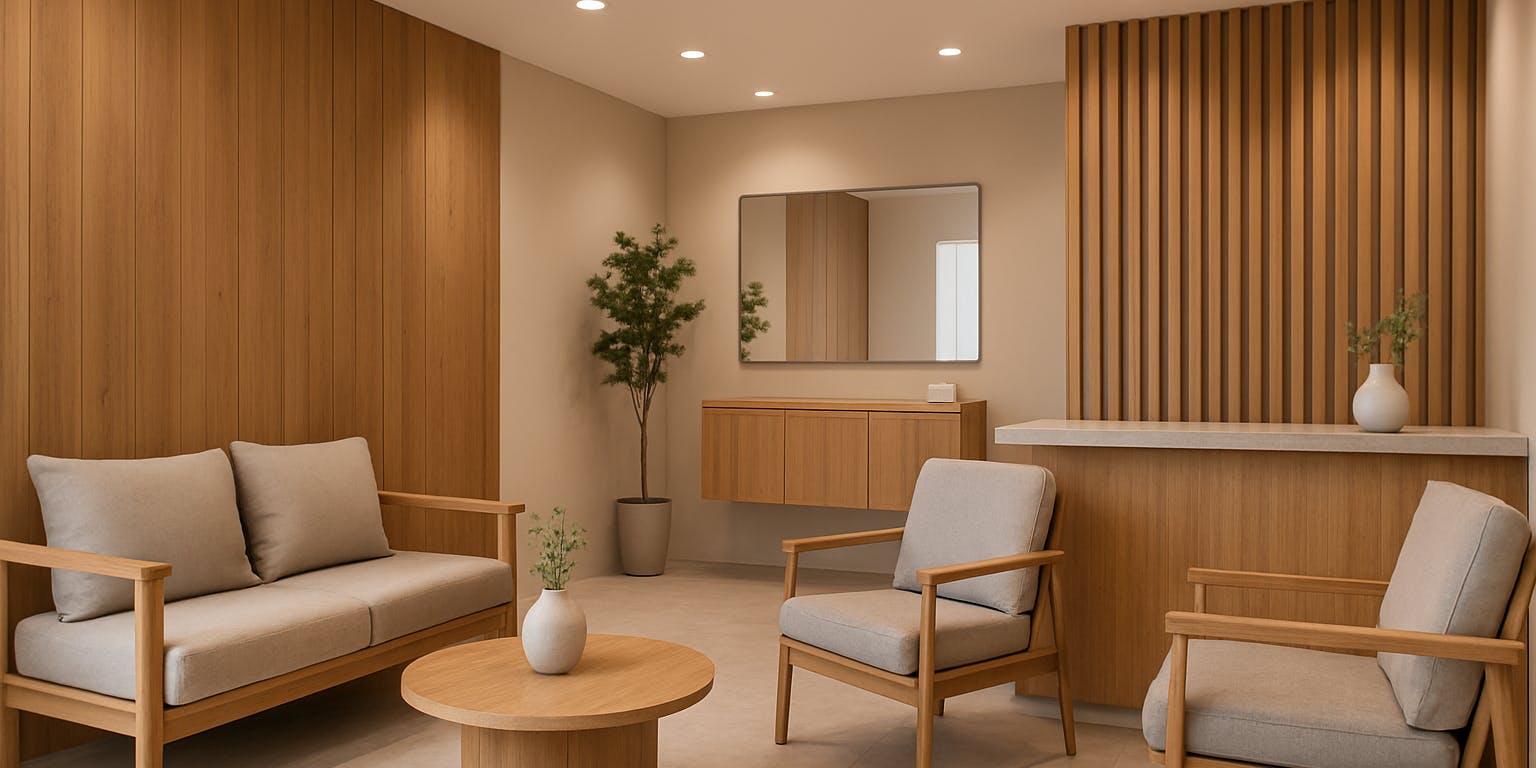木材は「自然」や「温もり」を象徴します。待合室やカウンセリングルームに木の質感を取り入れると、患者さまの緊張を和らげやすくなります。経験上、木はやさしさと親しみを直感的に伝えるため、初めて来院される方に安心感を、リピーターには居心地の良さをもたらします。
